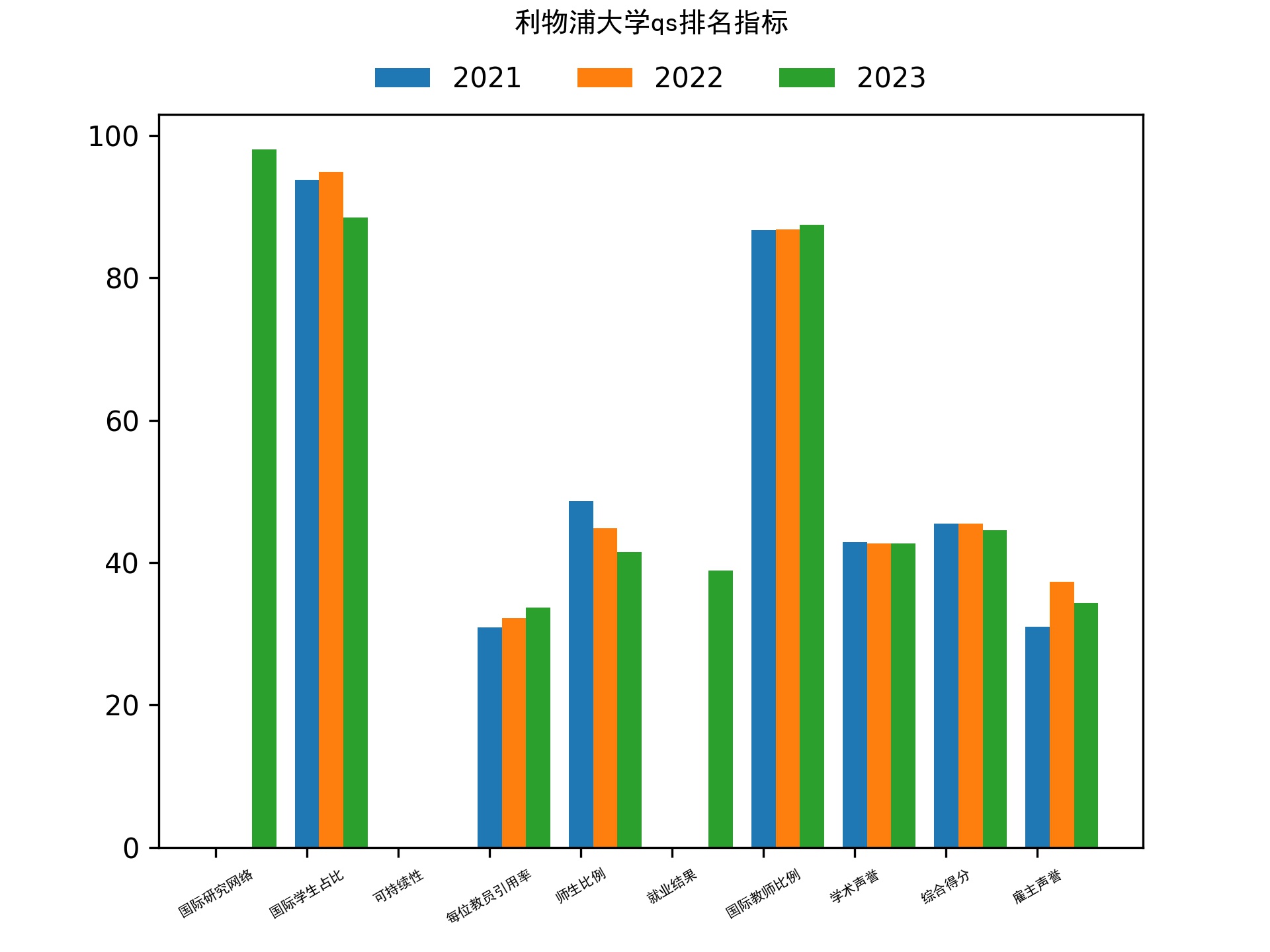 * 师生比例得分方面,利物浦大学在2023年为41.5分,而在2022年则高达44.8分。